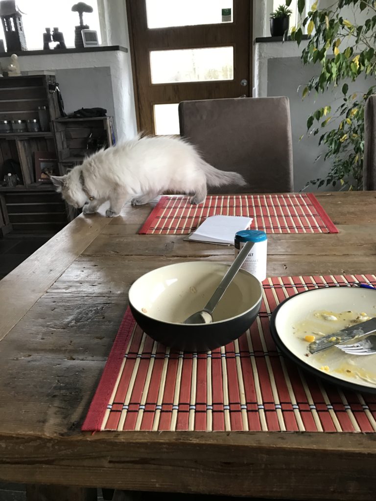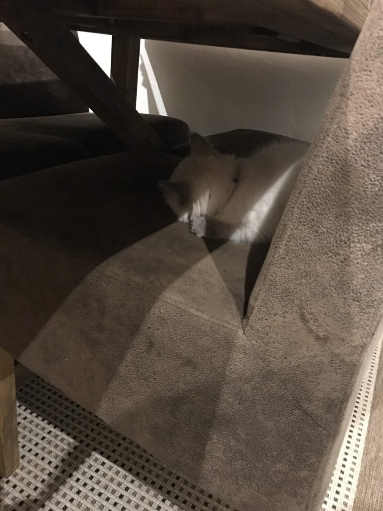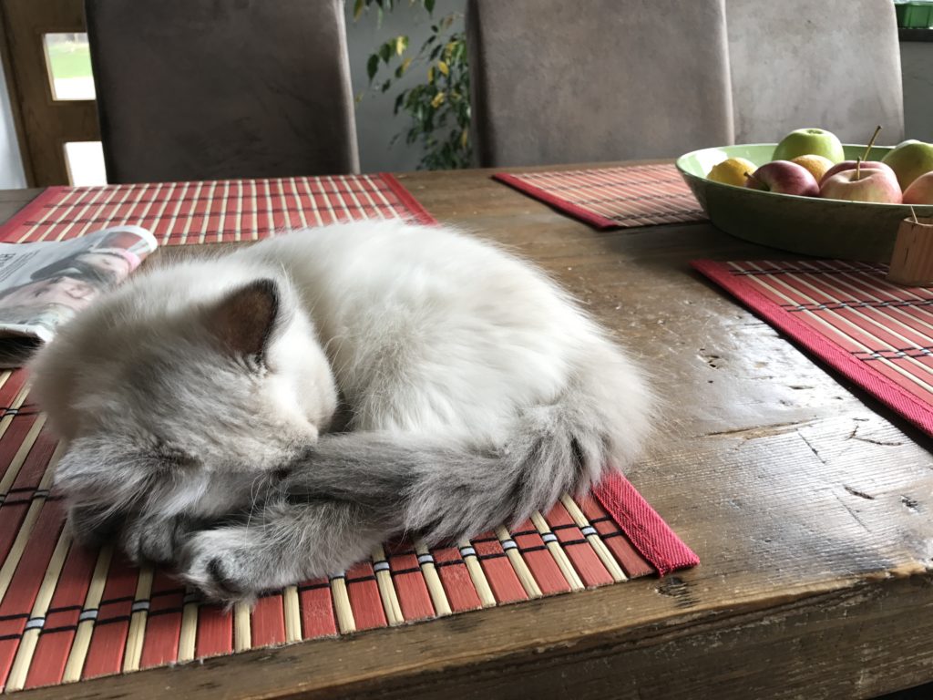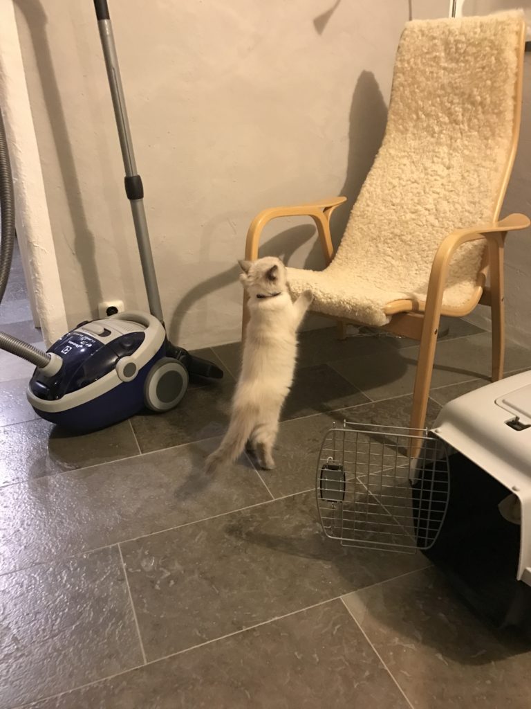 Jag har haft många katter genom livet så jag visste att detta kunde ta sin tid vilket det givetvis gjorde. Numera klättrar hon upp och ner betydligt mycket snabbare och säkrare som tur är.