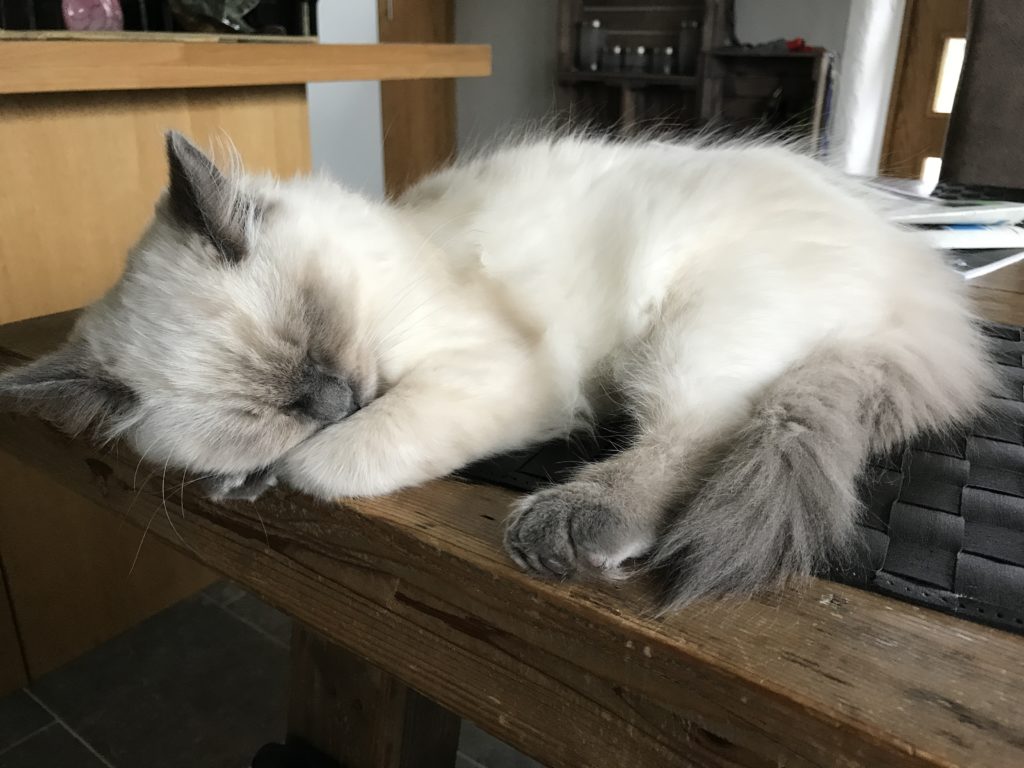 Hennes favoritplats dagtid blev köksbordet där hon spenderat åtskilliga timmars sömn. Under vintern blir det lite tv-tittande och givetvis vill Sookie vara med helst liggandes på min mage. Hennes favoriter är givetvis fiskar och fåglar samt möss på tv:n.
