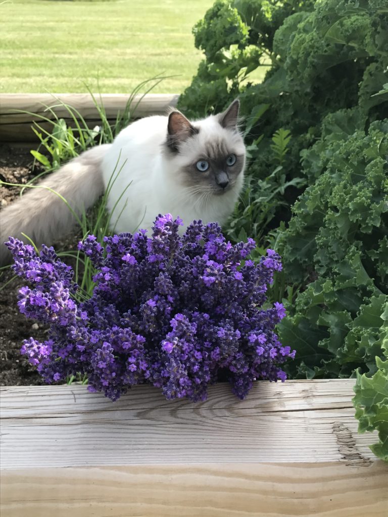 Sookie var snabbt ute i trädgården med mig. Hon lärde sig snabbt hålla ett öga på vart jag brukade befinna mig. Jag kommer ihåg första gången hon kom fram till mig i lavendelraden i trädgården (min första prov-rad) jamande och med svansen rakt upp. Hon slängde sig ner jämte mig och spann så där som bara hon kan. Hennes första besök i ett av trädgårdens ekar fick mig givetvis att få hjärtat i halsgropen.