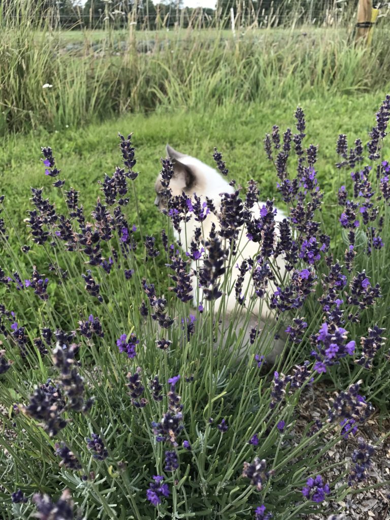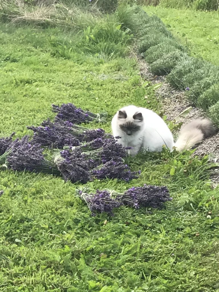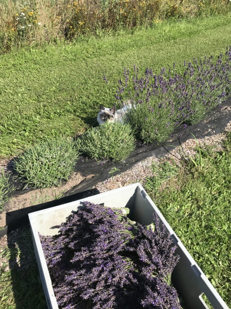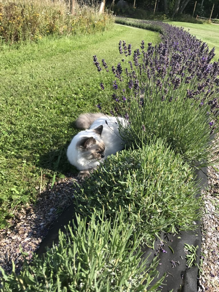 Sookie fick snabbt intresse för lavendeln givetvis då jag ligger på alla fyra och arbetar. Så vi spenderar många timmar tillsammans rensades ogräs klippning samt vid skörd.